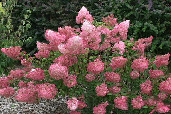 Гортензия метельчатая Пинк Леди (Pink Lady) – это изысканное украшение для вашего сада. Этот сорт отличается крупными, пышными соцветиями, которые меняют цвет от нежно-белого до насыщенного розового в течение сезона.