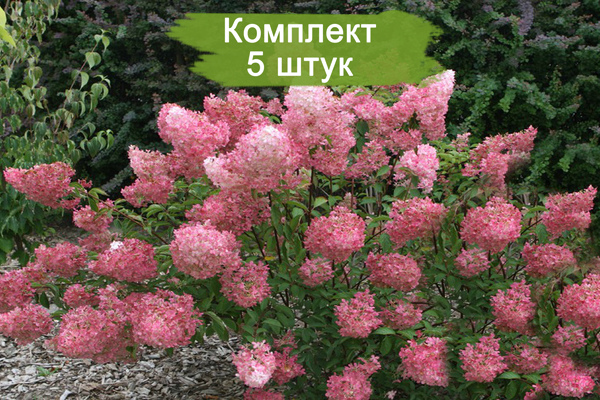 В комплекте 5 саженцев, готовых к посадке. Позвольте вашему саду засиять новыми красками с гортензией метельчатой Пинк Леди!